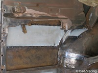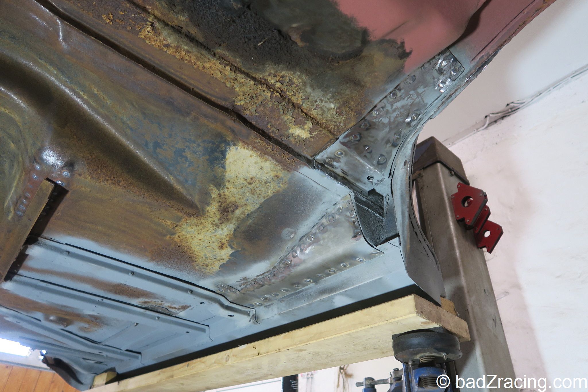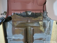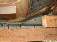 Endlich kann der Hilfsrahmen unter der Karosse verschwinden und gibt den kompletten Unterboden frei.